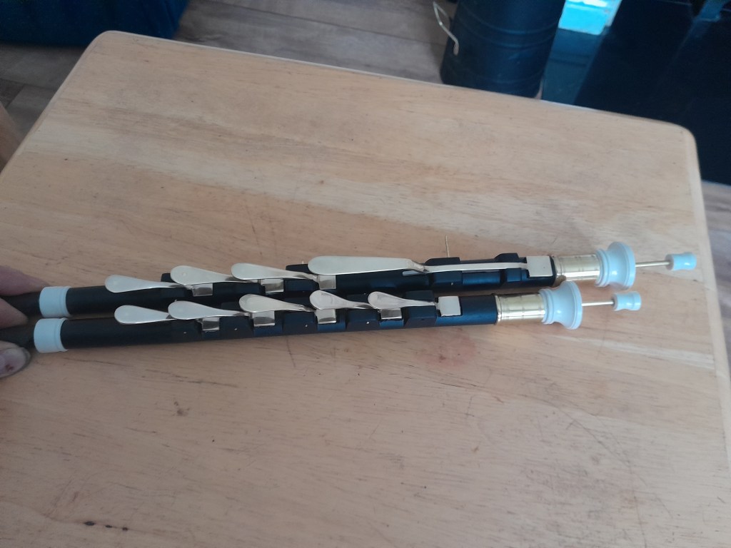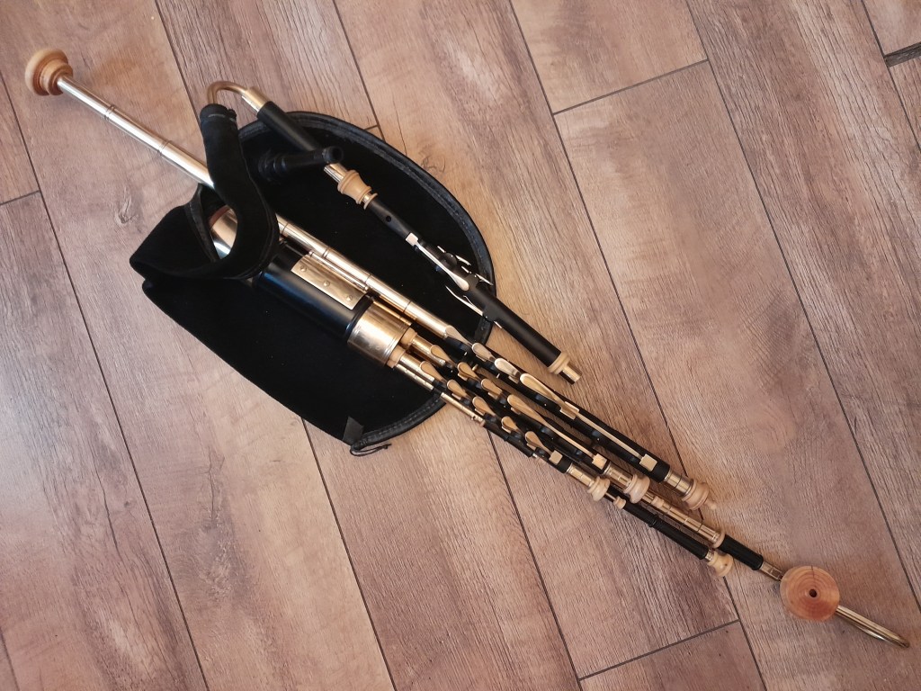Uilleann pipes made by Tommy Martin in Kilsallaghan, County Dublin.